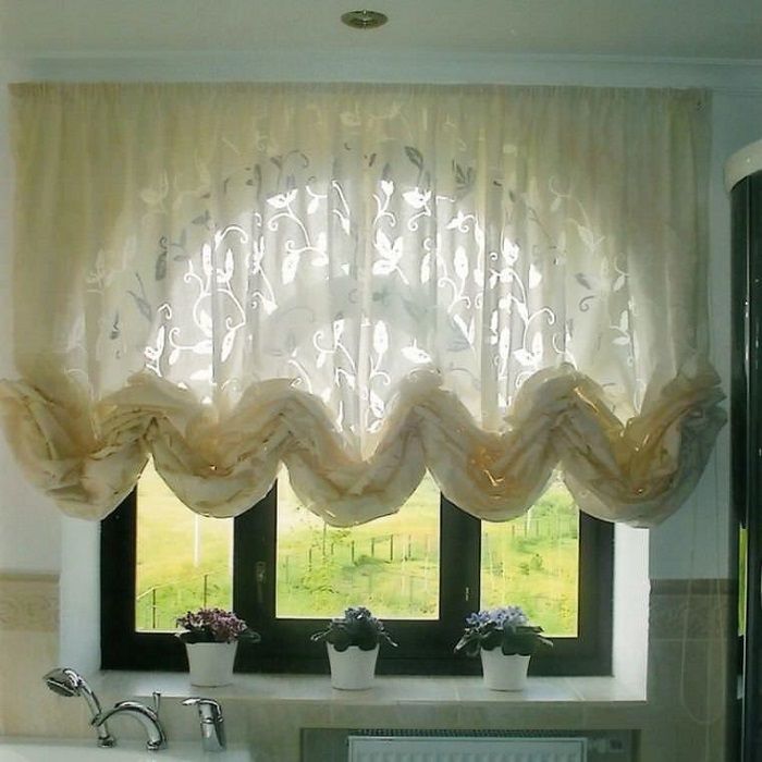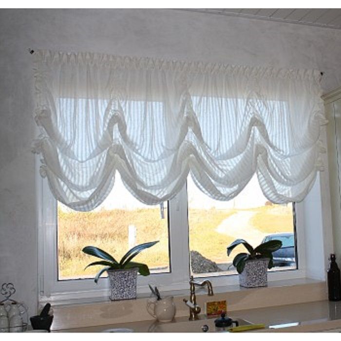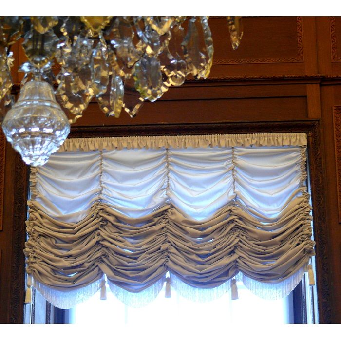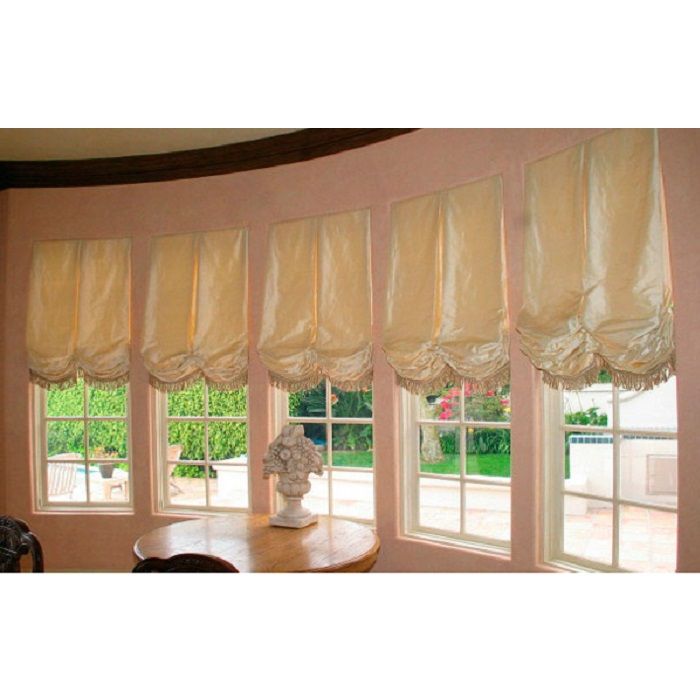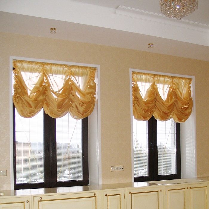 Особенность австрийских штор, в том, что провисающие складки делаются до определённого уровня, а выше них идет ровная ткань или совсем неблольшая сборка. Например, если повесить австрийские шторы на обычное окно, где высота подоконника от пола 90 см, то можно сделать складки от пола до подоконника, а выше подоконника оставить несобранную ткань.