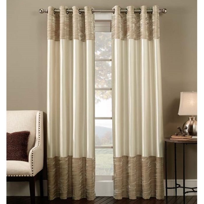 Отличительными особенностями люверсных штор являются явно выраженные складки (фалды) и возможность собирать их очень компактно. Люверсные шторы можно оформить рамой по полотну или низом из другой ткани. Как правило к люверсным шторам не делают ламбрекенов, а подбирают карниз соответствующий интерьеру. Cами люверсы могут быть даже в форме морского штурвала.